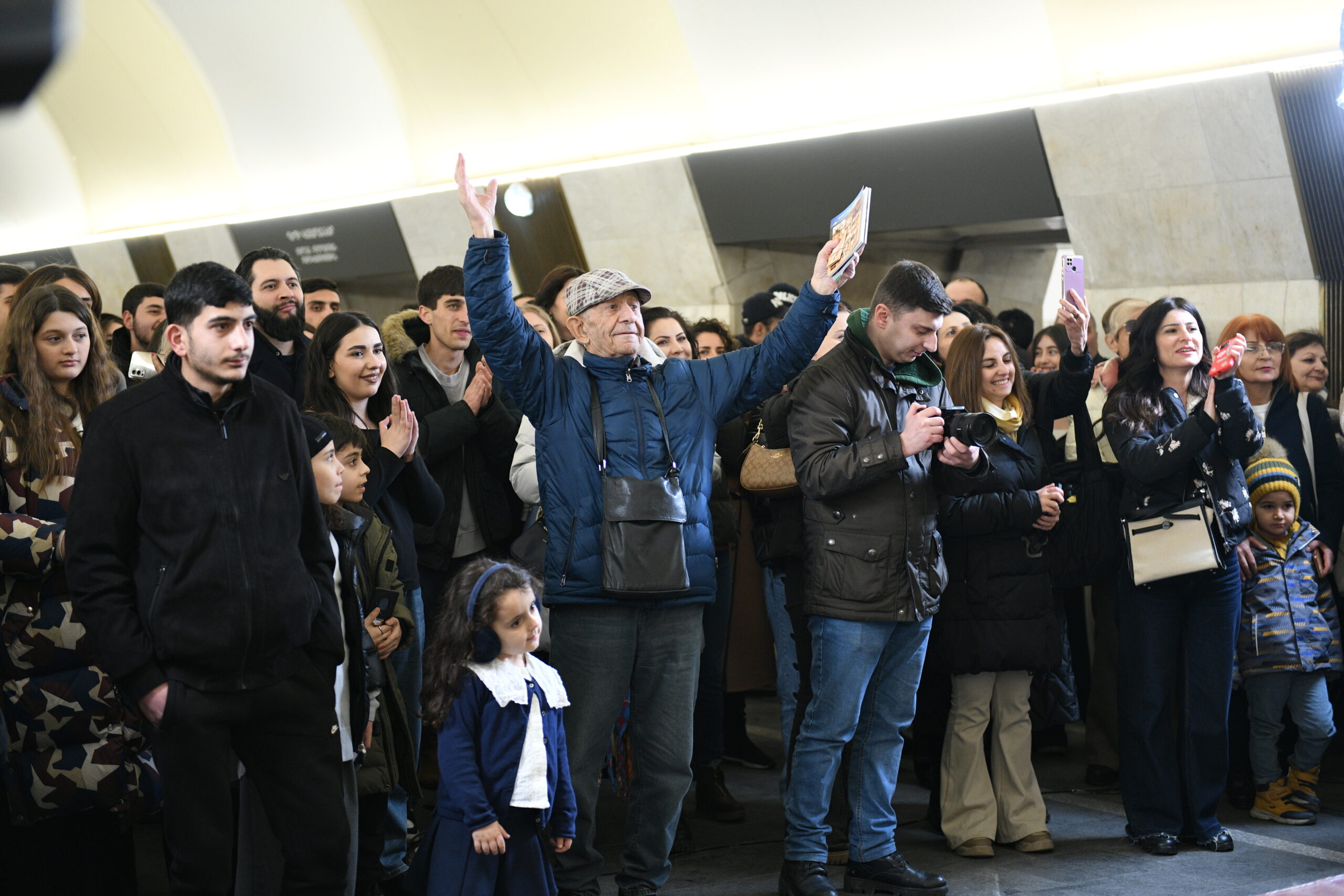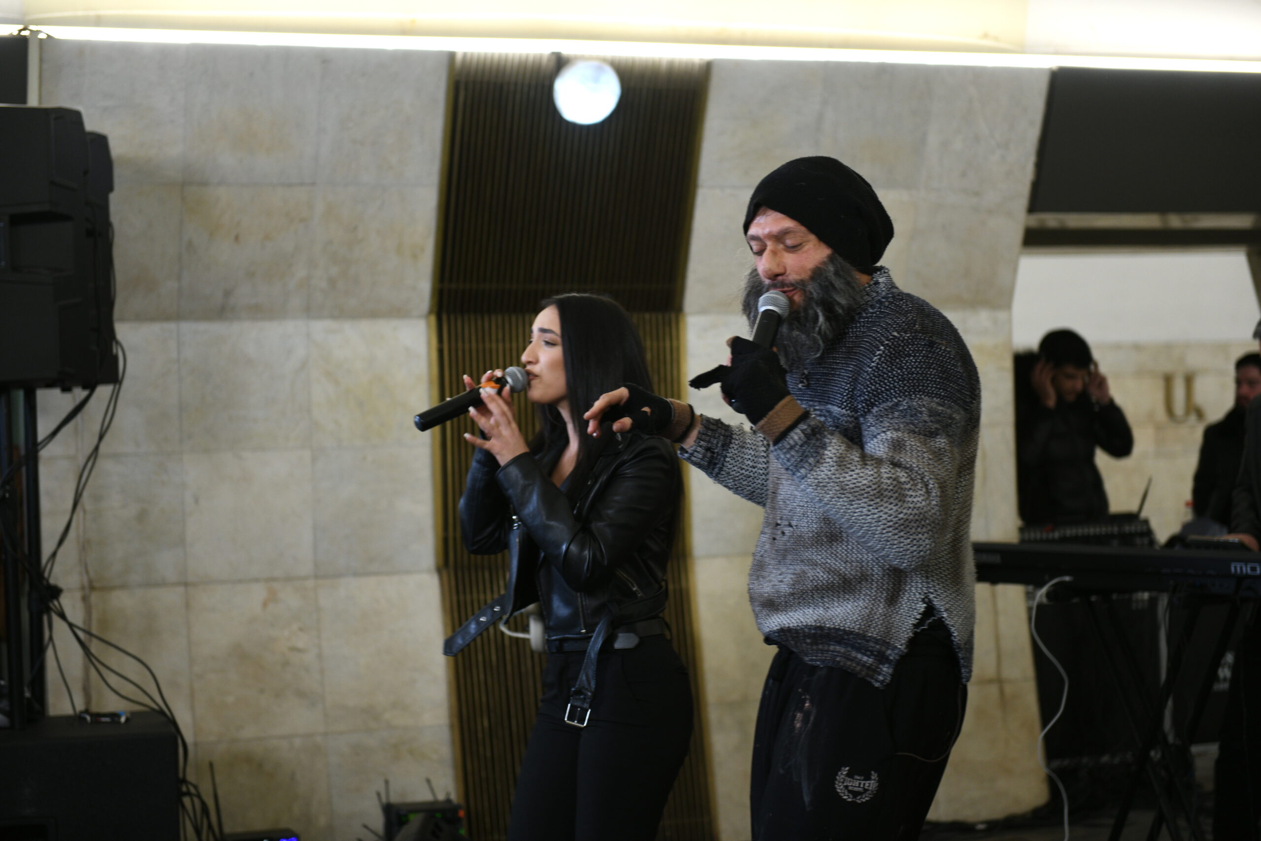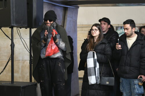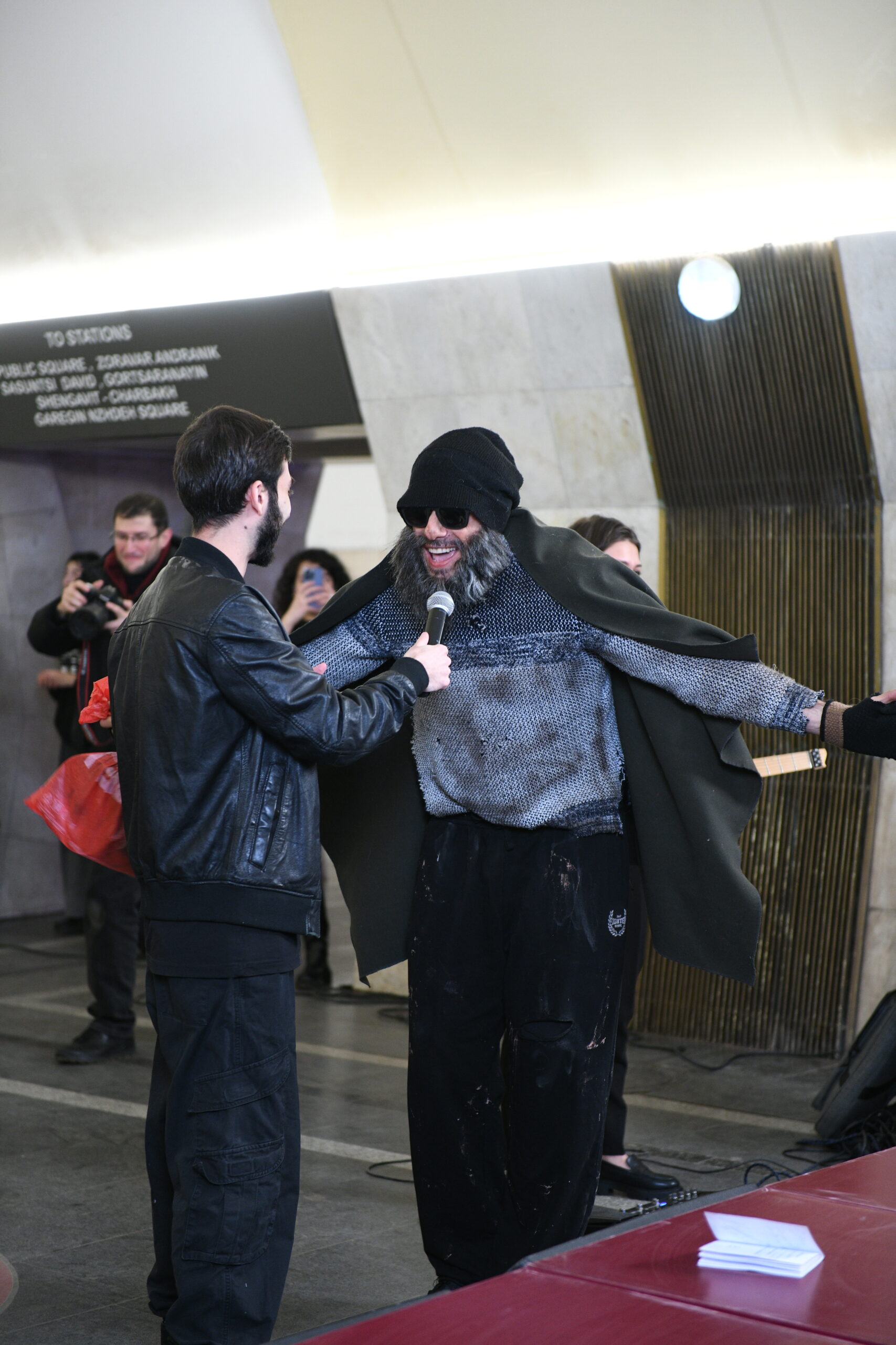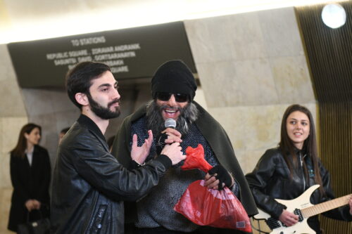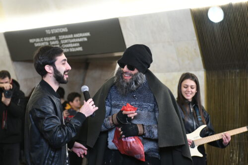 On February 27, metro passengers were treated to a special surprise when beloved Armenian singer Aram MP3 joined the YereOne Project band during a live performance. Disguised in the crowd at first, Aram MP3 suddenly took to the stage, captivating the audience with his unexpected appearance and memorable performance.