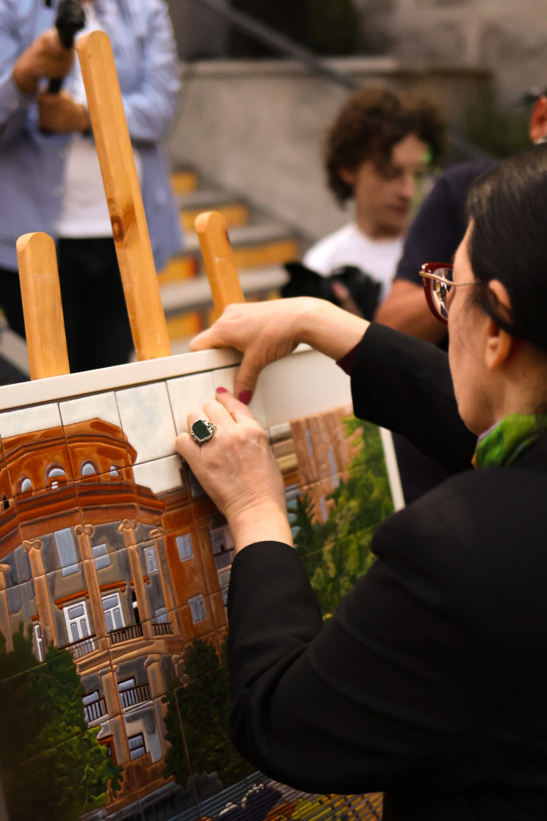 During the ceremony, the Mane Tiles team also assembled a mosaic of this section of Saryan Street, made up of 100 handmade ceramic tiles, and presented it as a gift to the Martiros Sarian House-Museum. Among the attendees was also Martiros Saryan’s granddaughter, Ruzan Saryan.
