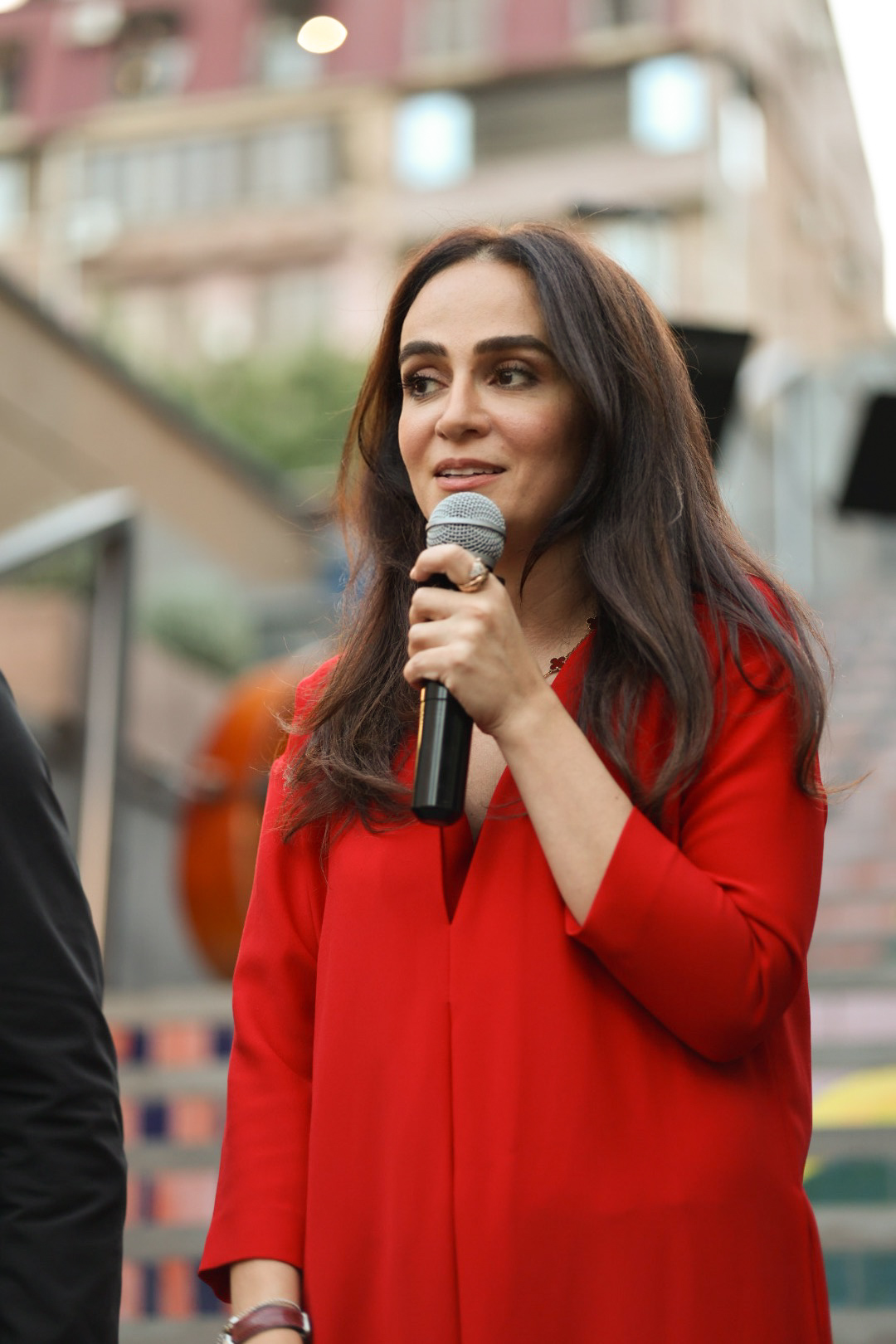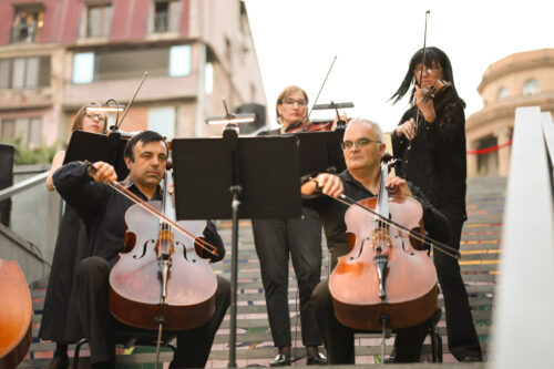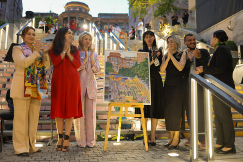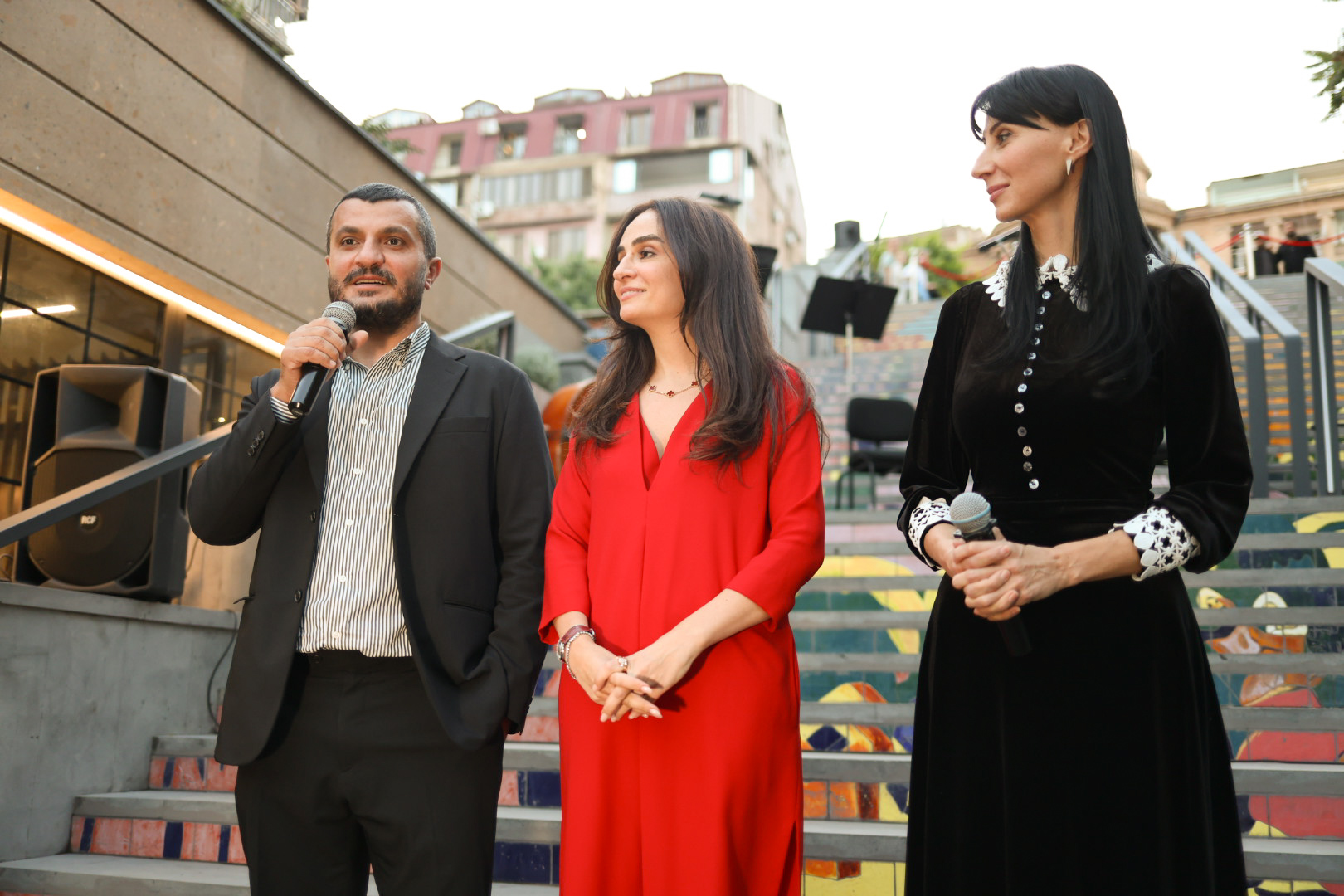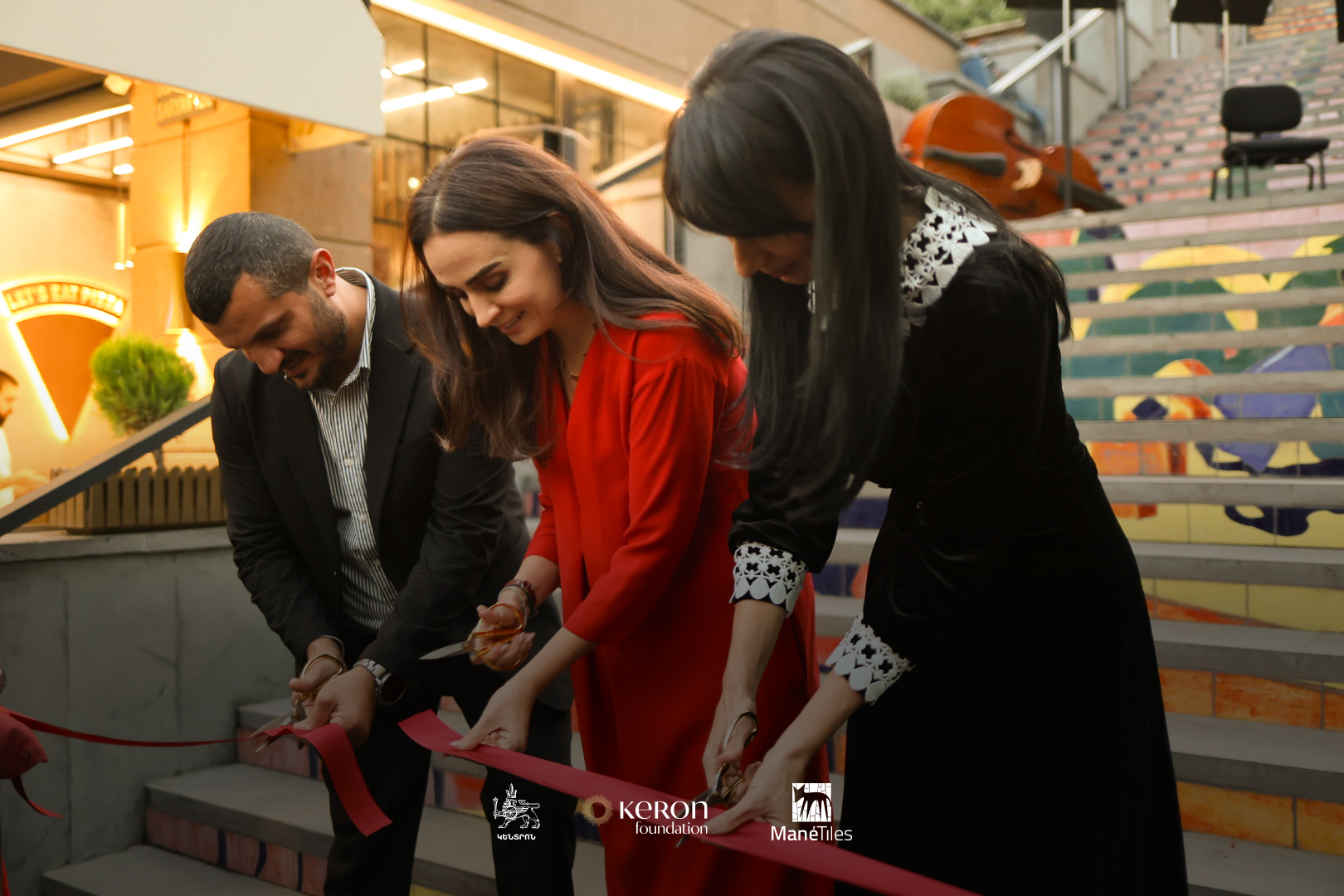 On September 29, at 18:30, the opening ceremony of the “Saryan Steps” took place. The event began with welcoming remarks from Petros Petoyan, the administrative district of Kentron; Vanane Ararktsyan, Executive Director of the Keron Development Foundation; and Anzhela Manukyan, Executive Director of Mane Tiles. The representatives of the three parties then cut the symbolic red ribbon together, after which the Armenian National Philharmonic Orchestra gave a surprise live performance right on the steps, creating a festive atmosphere and offering unforgettable moments to guests, participants, and passersby.